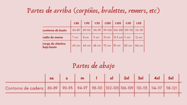 t.1 (XS y S) t.2 (M y L) t.3 (XL y 2XL) y t.4 (3XL y 4XL)