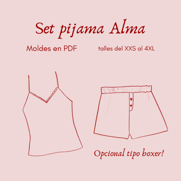 💌 Molde en PDF de remera triangulito de pijama y short de pijama opcional tipo boxer✨